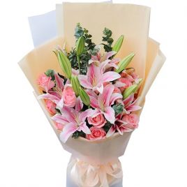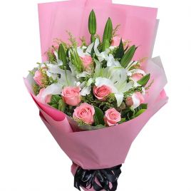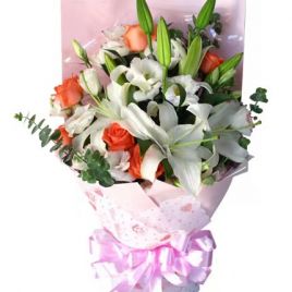 美丽相伴 6枝粉玫瑰,3枝白香水百合,白色桔梗5支,尤加利,绿叶点缀; 有鲜花相伴的日子,是美丽的;有你相伴的日子,是幸 福的!¥326 ¥548商品号: #317 有货: 有货 美丽相伴 6枝粉玫瑰,3枝白香水百合,白色桔梗5支,尤加利,绿叶点缀; 有鲜花相伴的日子,是美丽的;自营