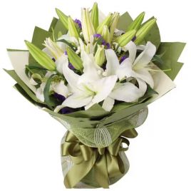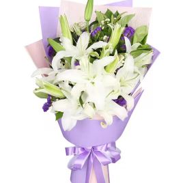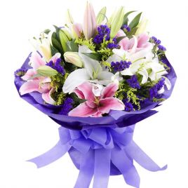 木棉情 6枝多头香水百合(白色+粉色搭配),勿忘我黄莺间插 紫色皱纹纸多层圆形包装,紫色蝴蝶结点缀。 花语:我是你近旁的一株木棉,和你缠绕在画。根,紧握在地下;叶,相触在云里。 你是春日的风,温情又¥318 ¥485商品号: #323 有货: 有货 木棉情 6枝多头香水百合(白色+粉色搭配),勿忘我黄莺间插 紫色皱纹纸多层圆形包装,紫色蝴蝶结点缀自营