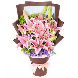 梦里花开 5枝多头粉百合,粉色石竹梅丰满点缀, 愿我的祝福像朵小花,永远盛开在你的梦里,时时刻刻¥299 ¥485商品号: #327 有货: 有货 梦里花开 5枝多头粉百合,粉色石竹梅丰满点缀, 愿我的祝福像朵小花,永远盛开在你的梦里,时时刻刻自营