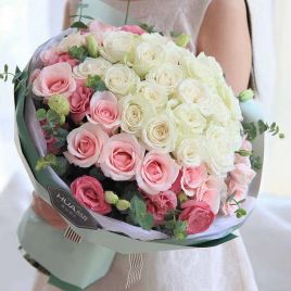 韩式系列/亲爱的你-粉玫瑰16枝、白和粉色洋桔梗各5枝、尤加利10枝、浅紫色小菊3枝、深粉色/浅粉色绣球1枝 花艺师打造 韩式花束系列¥418 ¥625商品号: #230 有货: 有货 韩式系列/亲爱的你-粉玫瑰16枝、白和粉色洋桔梗各5枝、尤加利10枝、浅紫色小菊3枝、深粉色/浅粉色自营